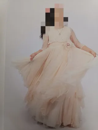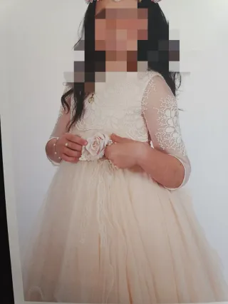 Maravilloso vestido de comunión con un diseño delicado y romántico. - Cuerpo y manga con encaje. - Falda vaporosa con varias capas de tul. - Adornado con volantes en el bajo. - Doble forro para dar mayor cuerpo. - Lazo también en tul y con ondas vaporosas. - Posee una flor a modo adorno opcional, para dar mayor romanticismo al vestido. - Marca Mimilú, con reconido prestigio en la confección de trajes de comunión y ceremonia. - Talla 8 grande.