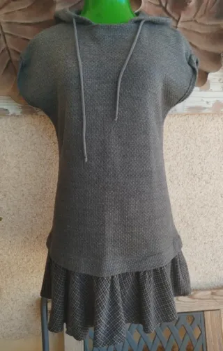 Vestido sudadera de Zara Trf Collection, perfecto para un look effortless chic. Talla S. Confeccionado en un acogedor tejido gris estilo tweed y un bajo con volante a cuadros que añade un toque preppy y femenino. Ideal para combinar con botas chunky para un vibe urbano o zapatillas blancas para un estilo más casual. El maniquí es talla M como referencia visual. Añado medidas detalladas en las fotos para un ajuste perfecto. En muy buen estado. abito con cappuccio e gonna scozzese