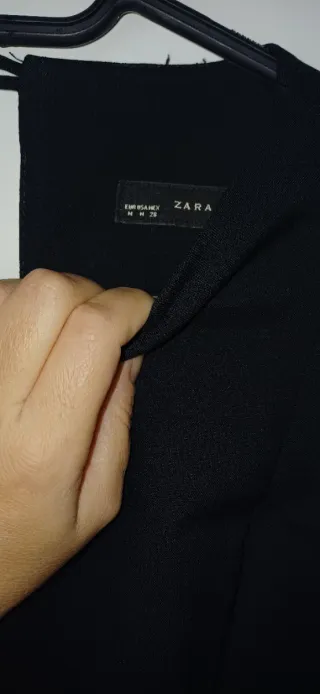 Traje de vestir de Zara en color negro. Tejido en viscosa.Blazer regular fit. Cuello con solapas de muesca. Manga larga acabada en puño con detalle de botones. Bolsillo de vivo en pecho y de solapa en cadera. Detalle bolsillo interior. Bajo con aberturas en espalda. Cierre frontal con botones. Forrada en cuerpo y mangas. Talla 48. Pantalón regular fit. Bolsillos frontales y detalle de bolsillos traseros de doble vivo con botón. Cierre frontal con cremallera y botón. fit. Talla 40. Un solo uso, en la graduación.