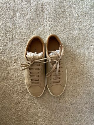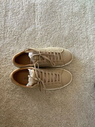 Zapatos elegantes de Zara en color beige. - Diseño moderno y versátil. - Cierre con cordones. - Suela blanca.