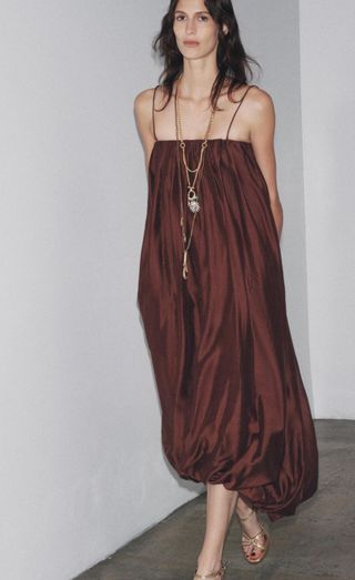 Vestido largo Zara tirantes finos burdeos