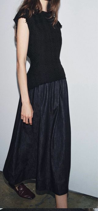 Prenda versátil de Zara que puede usarse como falda o vestido. - Tejido suave y elástico. - Diseño de corte recto. - Largo midi.