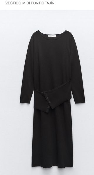 Vestido Midi Punto Fajín Zara Negro