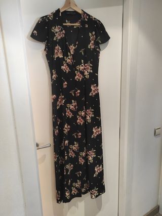 vestido de zara talla Xs. Negro con estampado floral manga corta. en perfecto estado