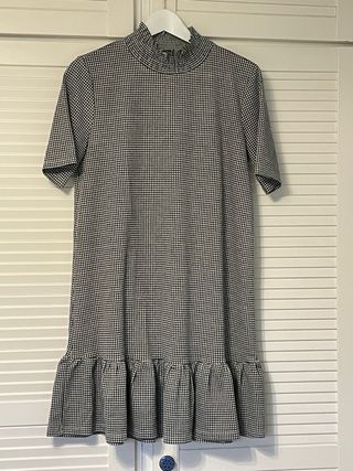 Vestido de Zara, de pra de gallo. Elástico, da talla, con vuelo.