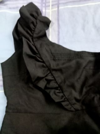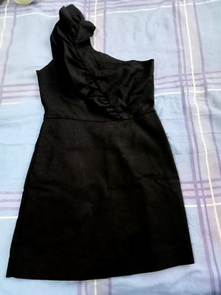 Vestido negro con un hombro al descubierto y volante en la parte superior de Zara