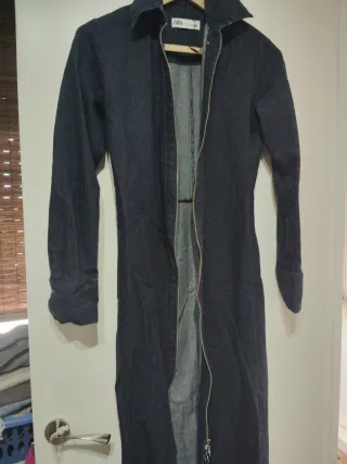 Vestido vaquero de manga larga con cremallera frontal. - Diseño ajustado. - Cuello camisero. - Puños abotonados.