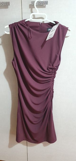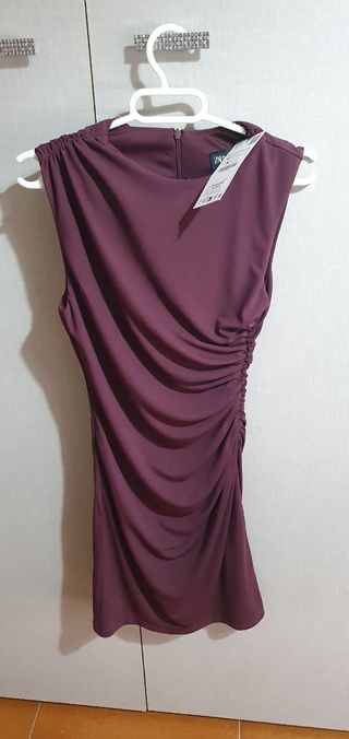 Precioso vestido de Zara en color burdeos. Es de talla XS y tiene un diseño entallado que se adapta a la figura. Vestido Zara burdeos talla xs. Ajustado con cremallera y drapeado. Nunca usado. Nunca puesto.