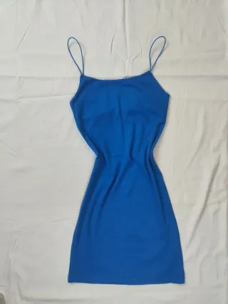 Vestido azul ZARA 💙, corto y ajustado, con tirantes finos tipo espagueti. Largo de 67 cm (Largo hasta medio muslo). Aunque marca talla L, se adapta muy bien a una M o incluso S gracias a su tejido elástico. Estilo minimalista y elegante, ideal para verano, salidas o eventos. En perfecto estado, sin manchas ni desperfectos. ✨ Favorecedor y versátil.