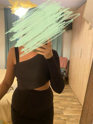 Vestido marrón de Zara con un diseño moderno y elegante. - Corte asimétrico. - Detalle cut-out en la cintura. - Largo midi.