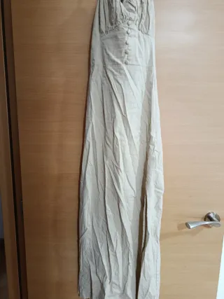Vestido largo de Zara, es de lino con tirantes finos. En la espalda lleva los tirantes cruzados y un elástico para que no se baje. La falda tiene un abertura lateral.