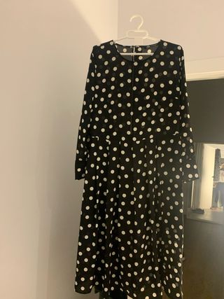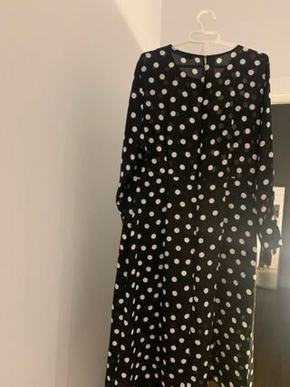 Vestido largo de Zara con estampado de lunares. - Diseño de manga larga. - Corte fluido y elegante. - Cierre de cremallera oculta.