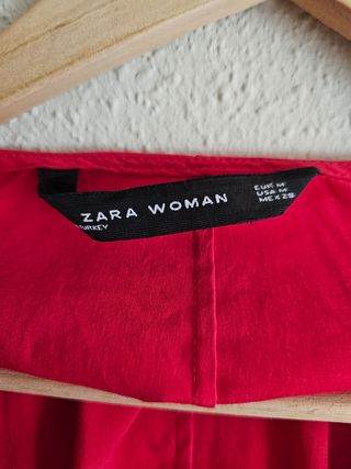 Precioso vestido rojo de Zara Woman, talla XS (equivalente a 34 o 6). Es un vestido de corte elegante y favorecedor. - De manga corta. - Con pliegues en la falda. - Cuello redondo.