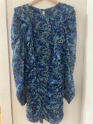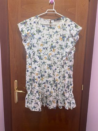 Vestido de Zara con un bonito estampado. - Diseño con volantes en el cuello. - Manga larga. - Corte escalonado en la falda.