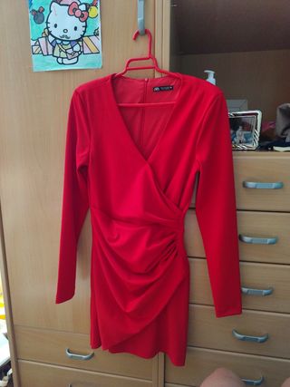Vestido rojo drapeado de Zara, talla S. - Cierre de cremallera invisible en la espalda. - Tejido suave y agradable al tacto. - Puesto dos veces.
