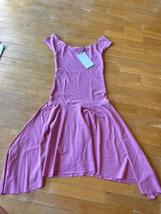 vestido muy original asimétrico una parte del vestido es recta y la otra plisada en la falda queda muy original