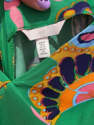 Vestido de Zara con un diseño patchwork muy original y llamativo. Perfecto para un look bohemio y moderno. - Estampado floral y geométrico. - Cinturón para ajustar a la cintura. - Manga larga. - Cuello mao.