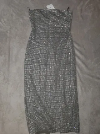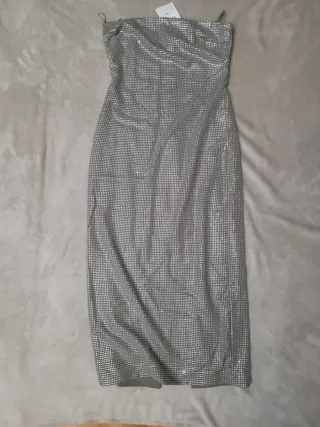 Vestido Zara brillos plateado ocasión especial