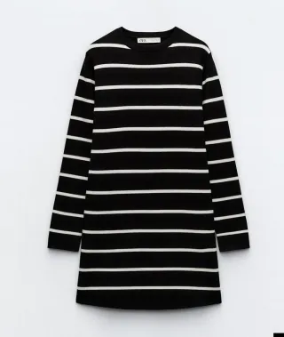 Vestido de punto de Zara con un diseño de rayas clásico. - Manga larga. - Cuello redondo. - Largo hasta la rodilla.