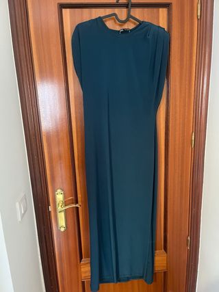 Elegante vestido largo de Zara en un bonito color verde azulado. Ideal para cualquier ocasión. - Diseño de manga corta. - Corte recto y fluido. - Abertura lateral en la falda.