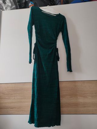 Vestido largo de Zara con un diseño elegante y moderno. Ideal para cualquier ocasión. - Tejido acanalado. - Detalle de fruncido lateral con cordones ajustables. - Manga larga. - Bajo con acabado festoneado.