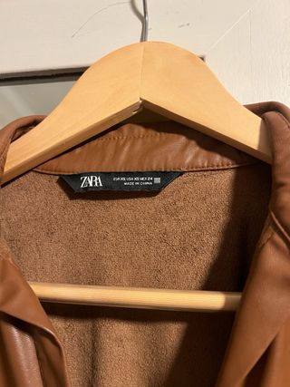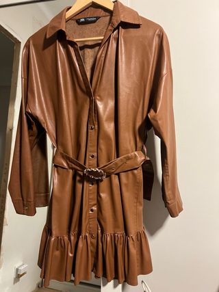 Vestido de efecto piel con cinturón. - Diseño camisero. - Cinturón con hebilla decorativa. - Volante en el bajo.