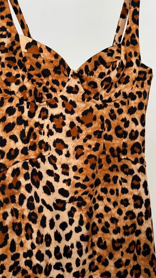 Vestido de tirantes con un llamativo estampado de leopardo. - Diseño con tirantes finos cruzados en la espalda. - Corte que favorece la figura. - Tejido ligero y fluido.