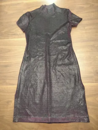 Elegante vestido de fiesta en color burdeos. Ideal para ocasiones especiales. Talla s usado una vez - Diseño con manga larga. - Detalle de tejido de red en la parte superior y mangas. - Corte ajustado que realza la figura.