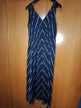Vestido largo azul y blanco