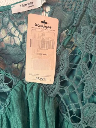 El vestido es preciosísimo y muy peculiar. Ideal para eventos o celebraciones especiales. Se ha usado solo una vez un máximo de 5 horas, el tiempo que duró la celebración. Prácticamente está nuevo. Escote en V, muy favorecedor . Contiene encaje bordado y pedrería aplicada en mangas y busto, que estiliza mucho y da presencia. Medidas: manga 3/4 mide 43cm. Largo total del vestido 146 cm, sisa 53(estira muy poco). Cintura 46. Lleva cremallera lateral izquierda de 30 cm para facilitar vestirlo y quitarlo. Falda del vestido (la parte de abajo) es de vuelo ligero y con buena caida. El color es intenso. Verde esmeralda. Precio negociable.