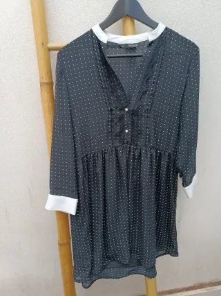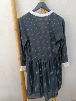 Vestido de mujer de Zara con un diseño de lunares. - Diseño de lunares blancos sobre fondo negro - Cuello blanco. - Puños blancos. - Corte cintura - Talla S