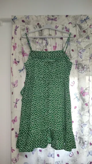 Vestido ligero de tirantes con un bonito diseño. - Tejido con pequeños bordados florales. - Detalle de encaje en el escote y bajo. - Cintura marcada con fruncido.