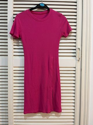 Vestido midi de canalé en color rosa, con un corte ajustado que realza la figura. Ideal para lucir un estilo moderno y femenino. - Diseño ajustado. - Largo midi. - Talla S/M.