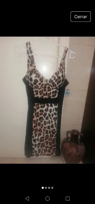 Vestido con estampado de leopardo en paneles. - Diseño ajustado. - Escote pronunciado. - Paneles laterales negros.