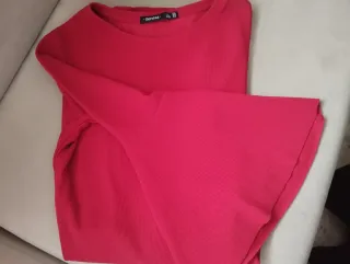 Vestido midi ajustado canalé fucsia rosa S M nuevo