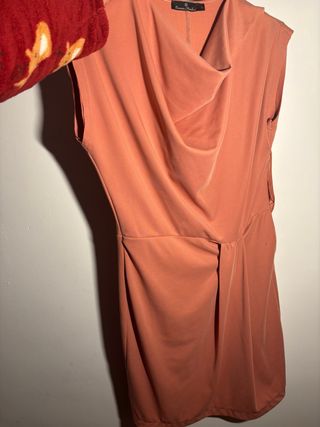 Vestido punto cuello alto Zara naranja.