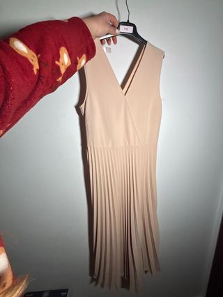 Vestido beige plisado talla M