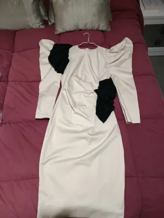 Vestido midi beige y negro talla S