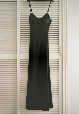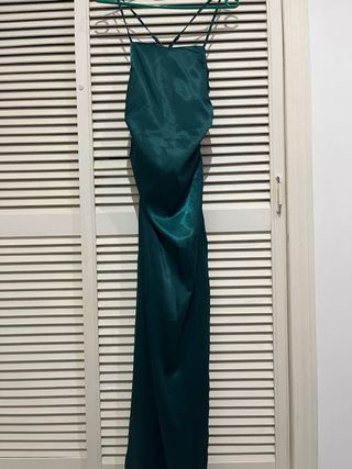 Vestido largo tirantes satén verde botella talla S