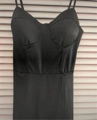 Vestido largo liso saten negro tirantes elegante S