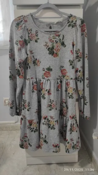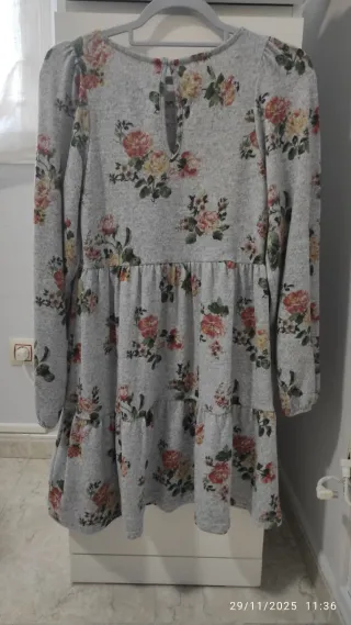 Vestido de manga larga con un bonito estampado floral. Nuevo sin estrenar,pero sin etiqueta. - Diseño de corte escalonado. - Cuello redondo. - Tejido suave y cómodo.