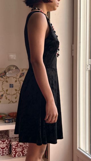 Vestido negro de Zara. - Composición: 65% viscosa, 35% nylon. - Fabricado en Indonesia.