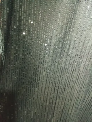 Vestido de fiesta con un diseño brillante y elegante. - Manga larga. - Escote en la espalda con detalle. - Diseño geométrico con lentejuelas. Talla M o una S grande. Una sola vez utilizado.