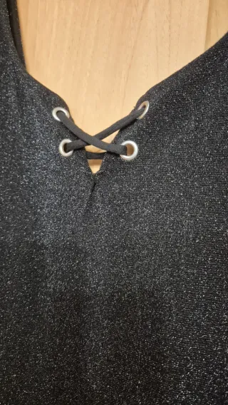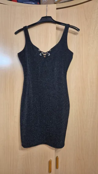 Vestido ajustado y brillante negro de Zara Trafaluc Escote en V con cordones Talla M, elástico Ussdo una sóla vez