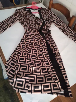 Vestido con brillo dorado y negro. Está como nuevo, usado en un par de ocasiones.