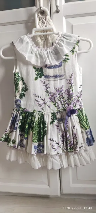 Vestido de gasa con estampado de flores. La parte superior es de nido de abeja. Las mangas son abullonadas. No tiene etiquetas, pero sólo utilizado en un par de ocasiones.