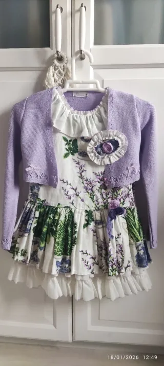 Vestido de La marquesita real, con chaqueta lavanda, talla 7