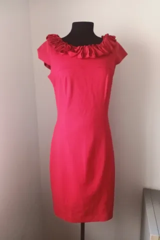 Precioso vestido de corte recto con un llamativo cuello volante. - Diseño elegante y favorecedor. - Ideal para eventos y ocasiones especiales. -excelente estado, solo usado una vez