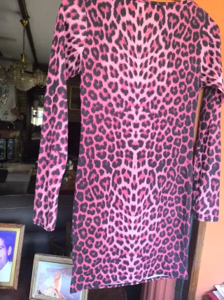 Vestido muy bonito con estampado de leopardo en tonos rosas y negros. Ideal para lucir un estilo atrevido. - Diseño de manga larga. - Corte ajustado.