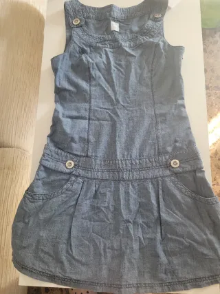 Vestido de estilo tejano para mujer. - Diseño sin mangas. - Detalle de pespuntes. - Bolsillos frontales. - Cierre con botones en los hombros. - Largo: 84cm - Largo axila: 42cm